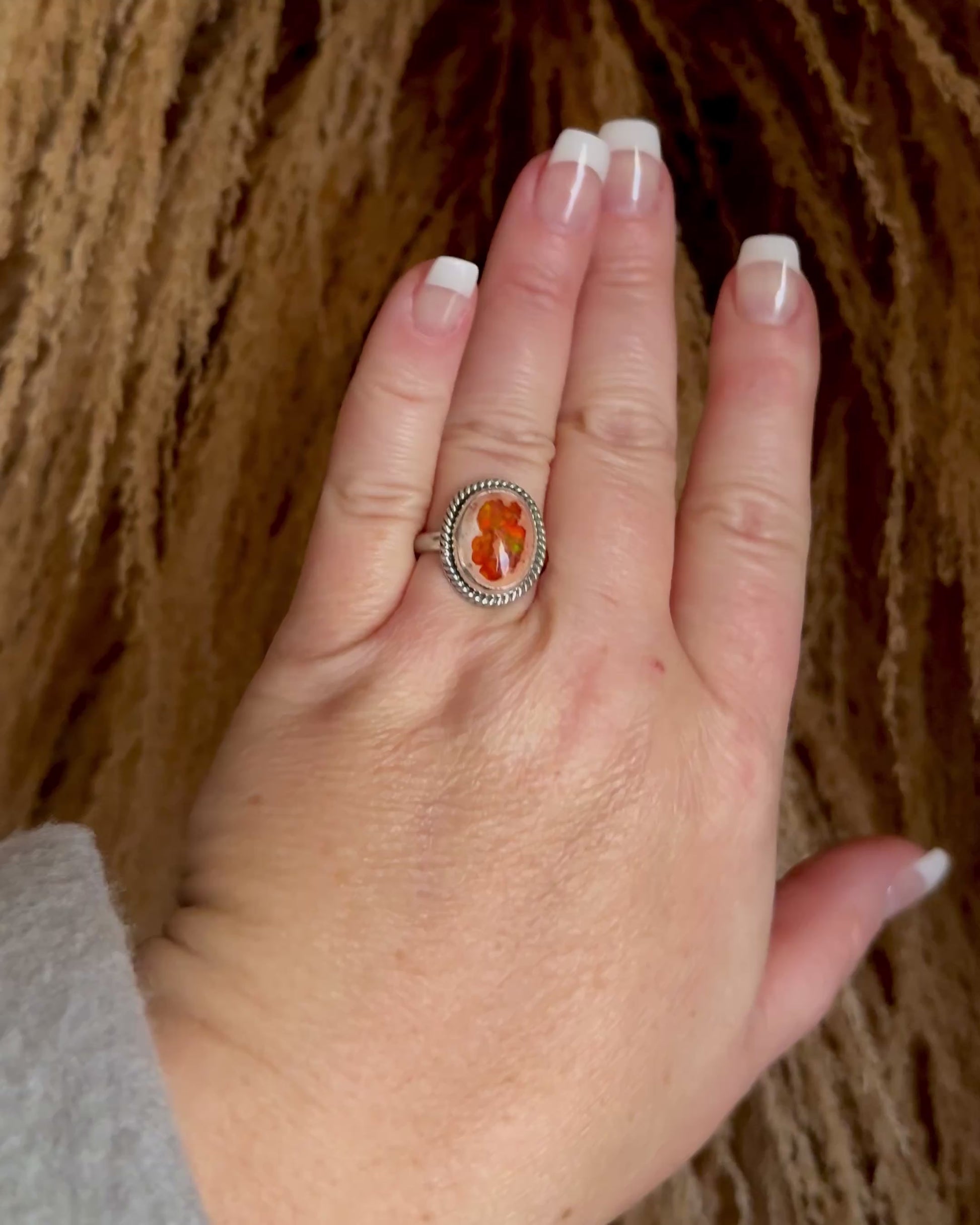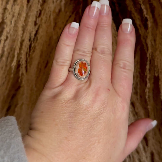 Flashy Orange Natural Fire Opal Ring