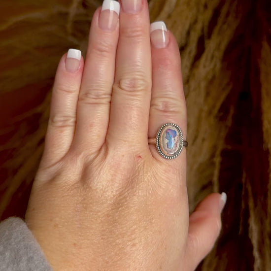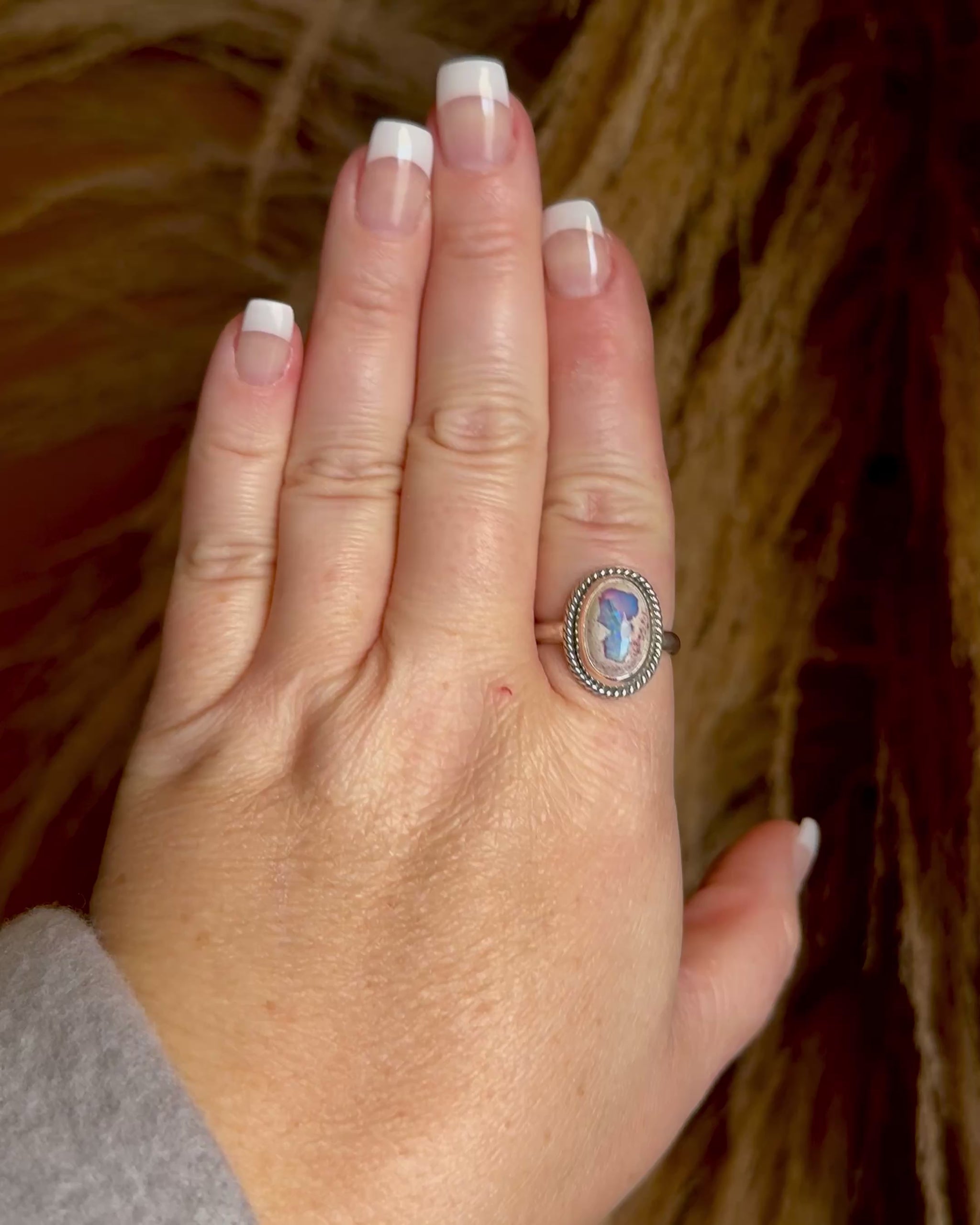 Stone: Natural Mexican Fire Opal (Purple with green/blue flashes.)