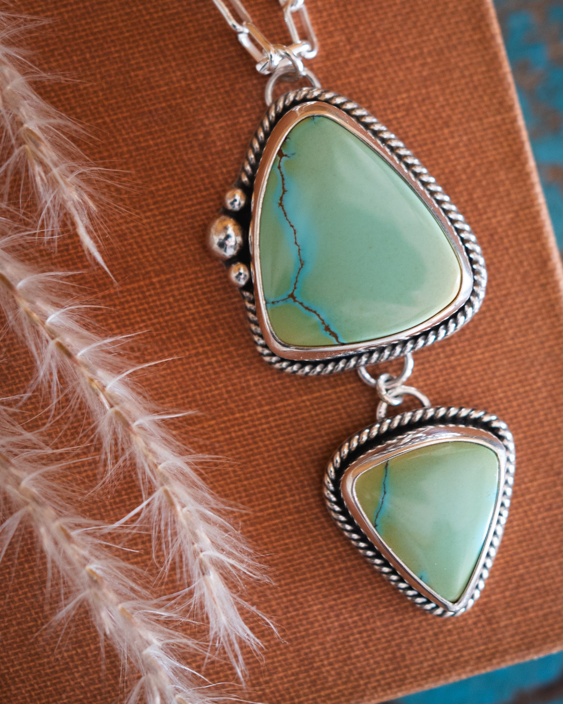 These stones are INCREDIBLE. The pastel blue/green with the blue vein running through the two stones is truly breathtaking and a turquoise collectors dream.✨ This is an heirloom piece that can be enjoyed with many daily outfits for generations to come!